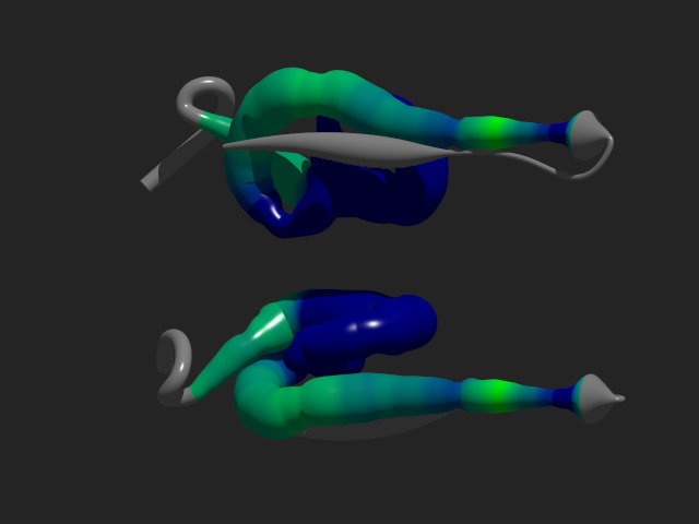 Representative image of GFP pattern along the gut (blue: DAPI, green: GFP)